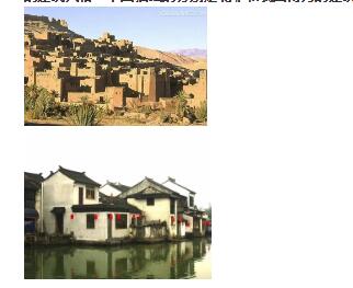 【例题】世界各地自然环境差异很大,聚落在长期发展过程中,往往形成了与环境相适应的建筑风格。下图描绘的分别是北非和我国南方的建筑,仔细观察后,回答下面问题。