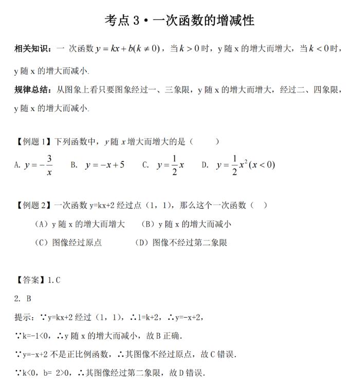 2022初中数学一次函数全考点+例题解析(3)