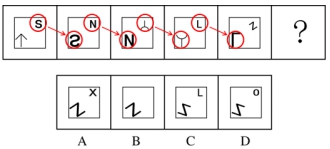 7.(单选题)从所给的四个选项中,选择最合适的一个填入问号处,使之呈现一定的规律性: