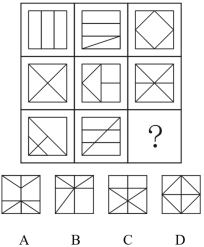 9.(单选题)从所给的四个选项中,选择最合适的一个填入问号处,使之呈现一定的规律性: