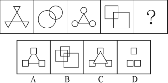 5.(单选题)从所给四个选项中,选择最合适的一个填入问号处,使之呈现一定规律性: