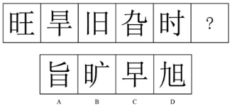 题干图形中“日”以顺时针方向,按照左、上、右、下、左平移,问号处“日”应位于汉字的上方,只有C项符合。