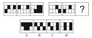 根据第一段图形,可得规律:白+黑=白,黑+白=白,白+白=黑,黑+黑=黑;第二段,应用规律,只有A项符合。
