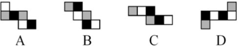 9.(单选题)如用白、灰、黑三种颜色的油漆将正方形盒子的6个上色,且两个相对面上的颜色都一样,以下哪一个不可能是该盒子外表面的展开图?