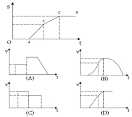 2.(单选题)如图所示是一辆公交车在平直道路上行驶的位移(s)-时间(t) 图像,则下列选项中最能 准确反映公交车速度(v)-时间(t)图像的是( ) 。
