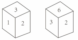 6.(单选题)下图是从不同角度观察同一个正方体得到的图像,该正方体的六个面分别被标记为1到6,则不可能相对的两个面是()。