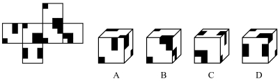 6.(单选题)左边给定的是纸盒的外表面,下面哪一项能由它折叠而成?