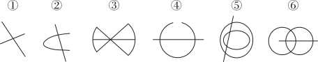 图形①②④均有四个奇点,可以两笔画成;图形③⑤⑥均能一笔画成,分为两组。