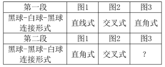 第一段各图形均为黑球-白球-黑球组合,第二段前2个图形均为黑球-黑球-白球组合,连接性如下表所示: