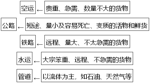 1.各种交通运输方式的适用范围
