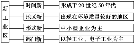 | 相同点 | ①形成于第二次世界大战后;②交通便利;③没有传统工业区的区位优势;④以中小型企业为主 | ||