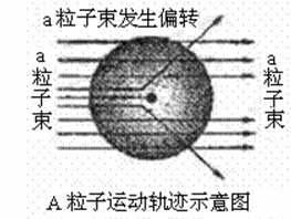 1911年,英国科学家卢瑟福用一束平行高速运动的α粒子(α粒子是带两个单位正电荷的氦原子)轰击金箔时,发现大多数α粒子能穿透金箔,而且不改变原来的运动方向,但是也有一小部分α粒子改变了原来的运动路径,甚至有极少数的α粒子好像碰到了坚硬不可穿透的质点而被弹了回来。实验结论: