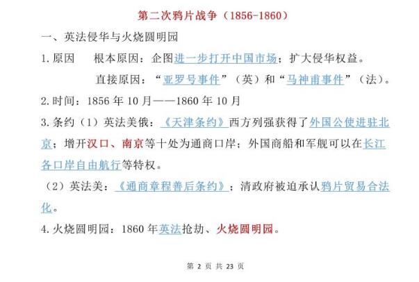 2022年初中历史第二次鸦片战争