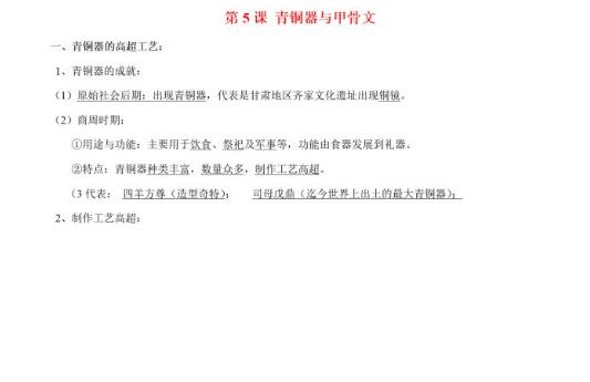 2022年初中历史青铜器与甲骨文