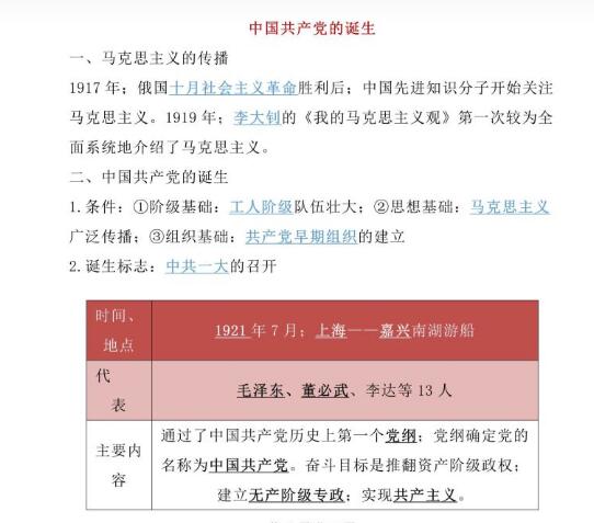 2022年初中历史中国共产党的诞生