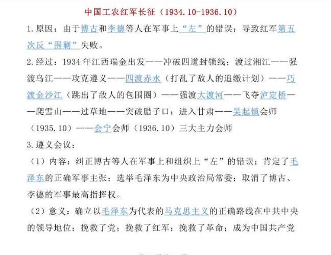 2022年初中历史中国工农红军长征
