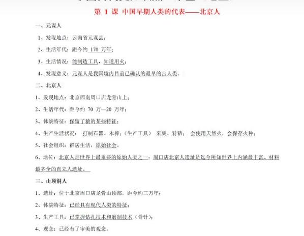 2022年初中历史中国早期人类的历史