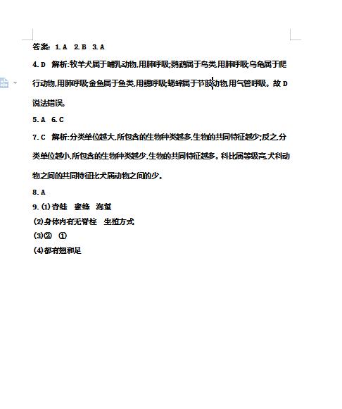 2022年初中生物的特征练习题答案(图片版)