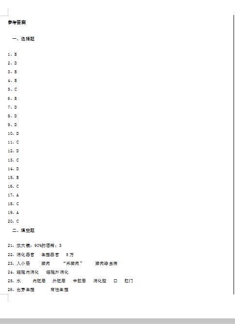 2022年初中生物水中生活的动物专题训练试题答案(下载版)