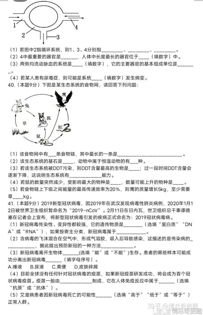 初中生物模拟试题答案