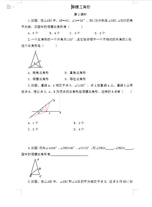 2022年初中数学等腰三角形的性质第2课时练习题答案