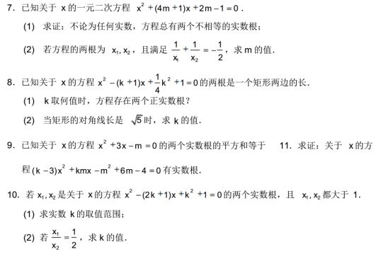 2022年初中数学根与系数练习解答题