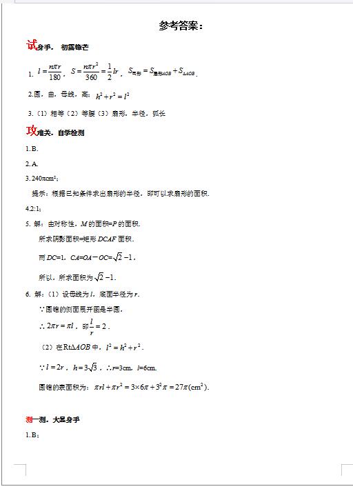 | 《2022年初中数学弧长和扇形面积练习题答案(下载版)》 |
