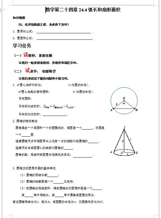 2022年初中数学弧长和扇形面积练习题(图片版)