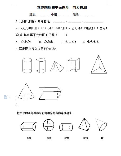 | 《2022年初中数学立体图形和平面图形专题测试(下载版)》 |