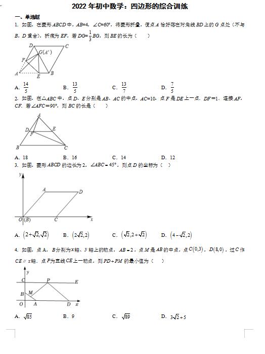 | 《2022年初中数学:四边形的综合训练(下载版)》 |