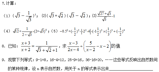 2022年初中数学:实数的运算练习(二)