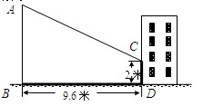 5、小亮同学想利用影长测量学校旗杆AB的高度,如图,他在某一时刻立1米长的标杆测得其影长为1.2米,同时旗杆的投影一部分在地面上BD处,另一部分在某一建筑的墙上CD处,分别测得其长度为9.6米和2米,求旗杆AB的高度.