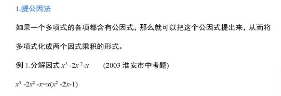 2022年初中数学因式分解方法一