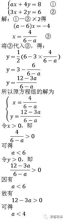 这是一个典型的含参二元一次方程的解的问题,根据常规思路,先解方程,得到含有参数a的方程的解,然后另对应的x、y大于零,求解a的范围即可。