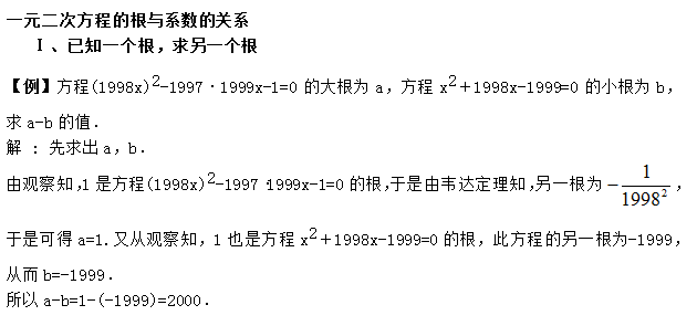 2022年初中数学:一元二次方程已知一个根,求另一个根