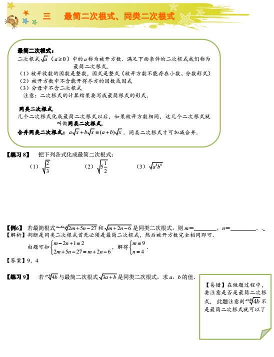 最简及同类二次根式练习题