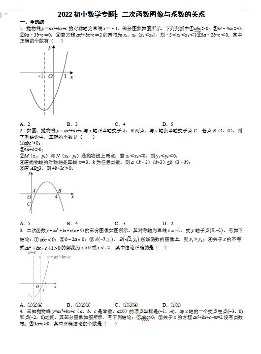 2022年初中数学专题:二次函数图像与系数的关系(下载版)