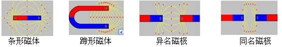 ①定义:根据小磁针在磁场中的排列情况,用一些带箭头的曲线画出来。磁感线不是客观存在的。是为了描述磁场人为假想的一种磁场。任何一点的曲线方向都跟放在该点的磁针北极所指的方向一致。②方向:磁体周围的磁感线都是从磁体的北极出来,回到磁体的南极。③典型磁感线: