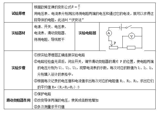 2022年初中物理:伏安法测导体电阻