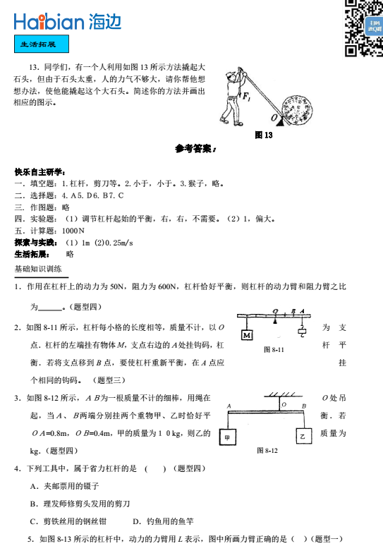 下一篇 :2022年初中物理:研究杠杆的平衡条件