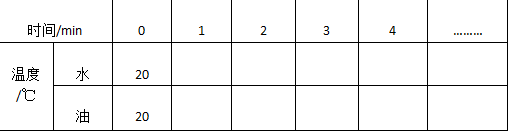 ②操作:用量个完全相同的加热器给质量初温相同的水,油加热,记录温度随时间的变化情况。