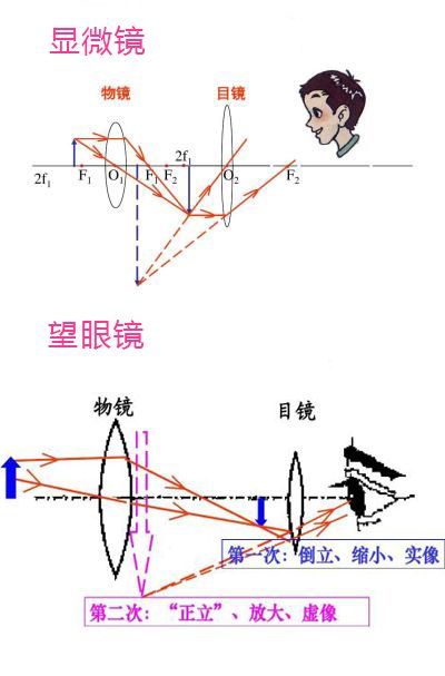 最后,要明白,常见的望远镜也罢,显微镜也罢,只不过是凸透镜成了两次像罢了。