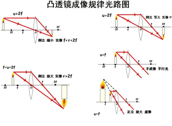 首先,得熟悉凸透镜的成像规律:
