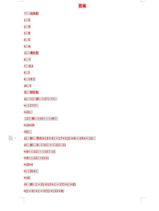 | 《2022年初中有理数的加减法同步练习答案(下载版)》 |
