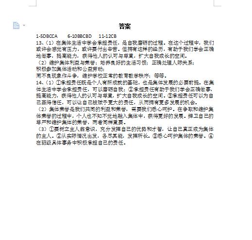 2022年初中政治我与集体共成长课堂检测答案(图片版)