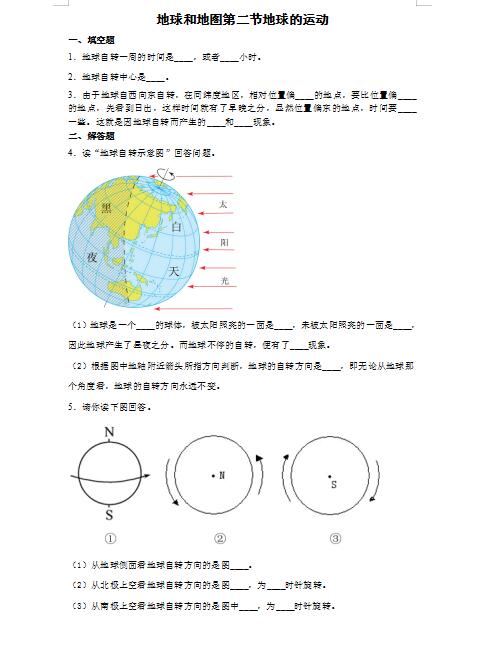 2022年地球的运动初中地理人教版七上同步试题精编(图片版)