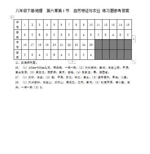 2022年人教版八下册地理自然特征于农业练习题答案(图片版)