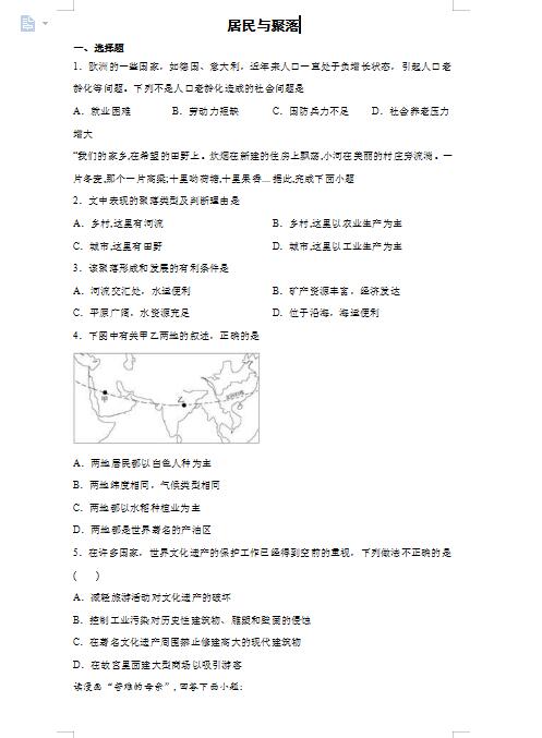 2022年人教版地理七上居民与聚落单元练习(下载版)