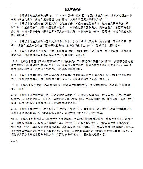 2022年人教版地理七下 印度课时检测答案(下载版)