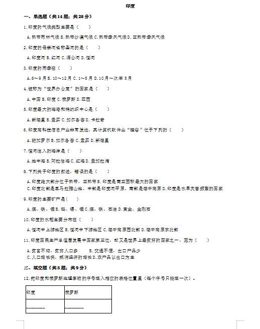 2022年七下地理人教版我们邻近的地区和国家单元测试卷答案(图片版)